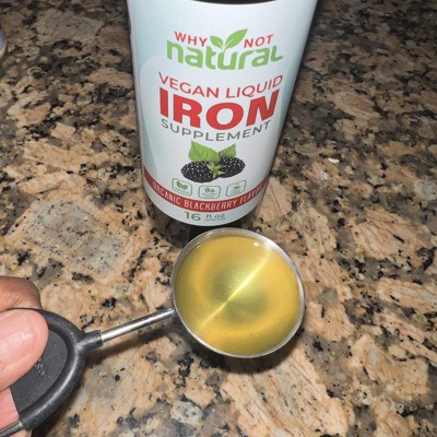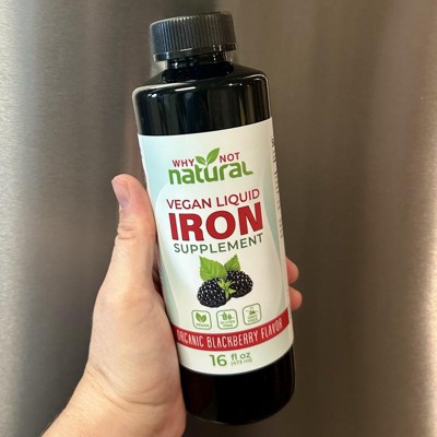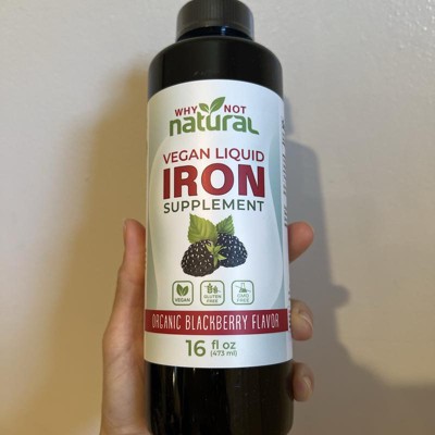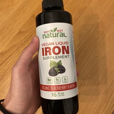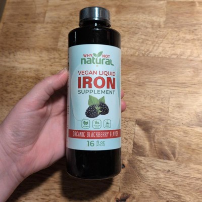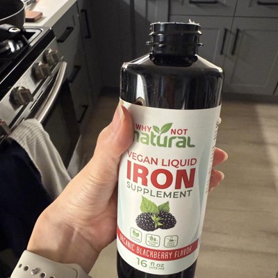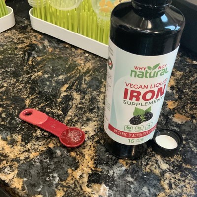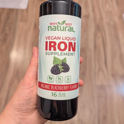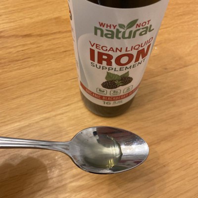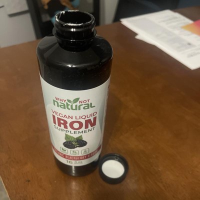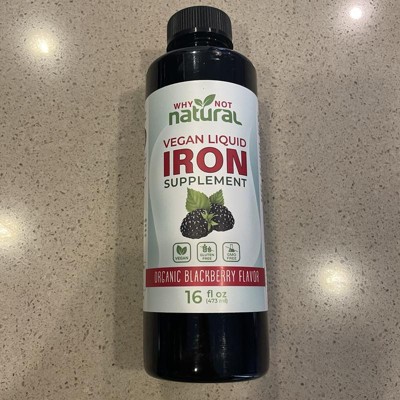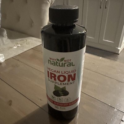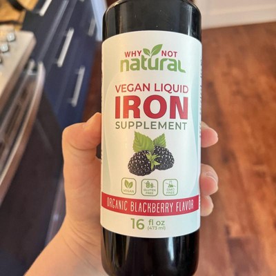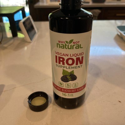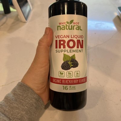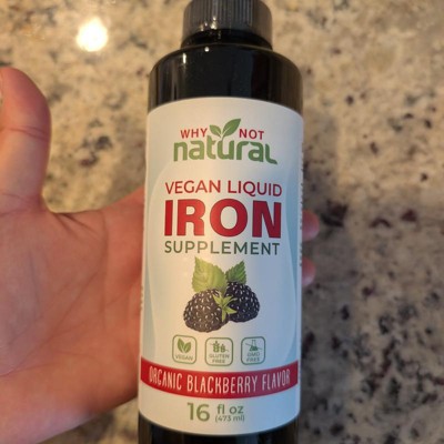 Why Not Natural Liquid Iron Supplement for Adults & Kids – Vegan, Non-GMO, Sugar-Free Formula for Anemia, with Organic Blackberry Flavor, 16 fl oz