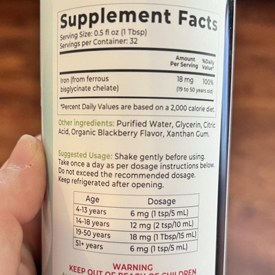 Liquid iron supplement blackberry flavor