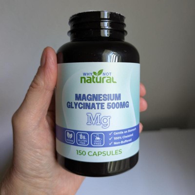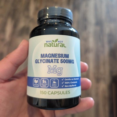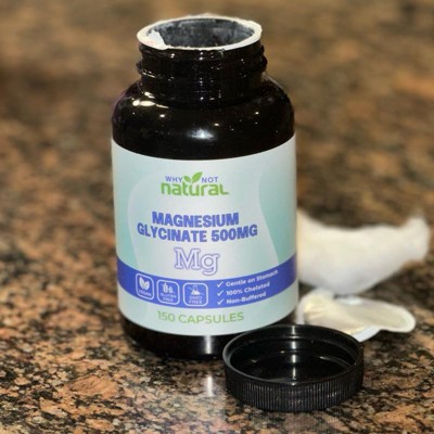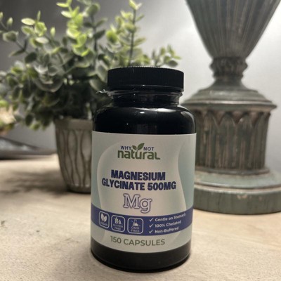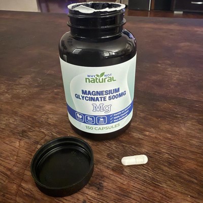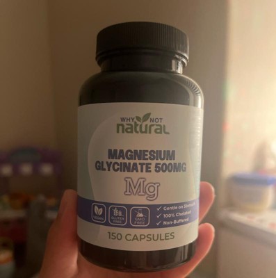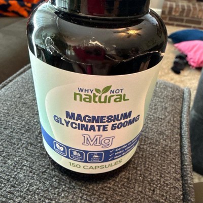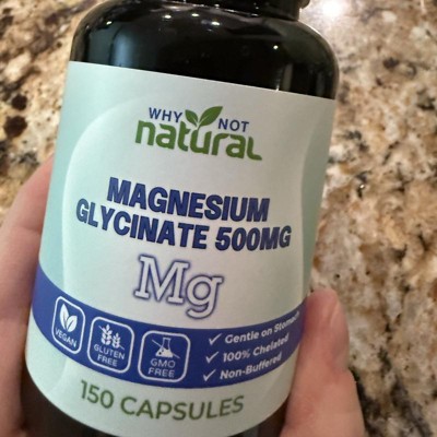 Why Not Natural Magnesium Glycinate 500 mg Capsules Supplement - Vegan, 100% Pure, No Filler - Supports Sleep and Relaxation, 150 Capsules