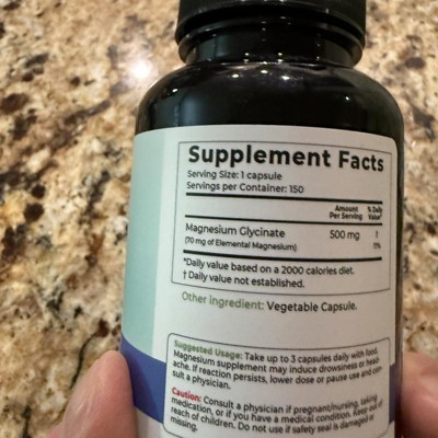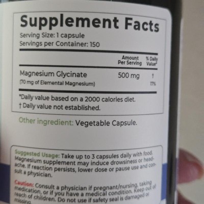 [This review was collected as part of a promotion.] I love this magnesium glycinate supplement. It is helpful for headaches for me and I found this one to be just as effective. It has proper dosing information on the label, and I love that it has no fillers and no artificial colors. It is 100% chelated for better absorption as well, which is important to look for in a supplement. Great supplement that I would buy again! I received an incentive to write this review.