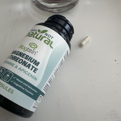 [This review was collected as part of a promotion.] I’m no stranger to magnesium supplements, but until now had not tried magnesium l-threonate. Why Not Naturals capsules are easy to swallow and have no strange aftertaste. I’ve been taking them for a week now, too soon to accurately record if I’m more relaxed, or better, cognitively. The daily recommended dose is three capsules daily, therefore one bottle will last a month if taken regularly. It also has alpigenin which has a multitude of beneficial properties, including acting as an antioxidant. Based on prior magnesium supplement prices I think this is on the higher end, but will definitely be worth it with time. I received an incentive to write this review.
