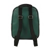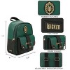 Elevate your style with this enchanting emerald green Wicked mini backpack, featuring vibrant rubber patches and a striking foil print of the movie's logo and title on the outside. The interior showcases a repeated print of the Emerald City, adding a magical touch. Measuring 8.5" W x 11" H x 3.5" D, this bag offers a buckle front pocket for easy access to your essentials and a spacious main zipper compartment for secure storage. Made with durable PU materials, this backpack can be wiped clean for effortless care.