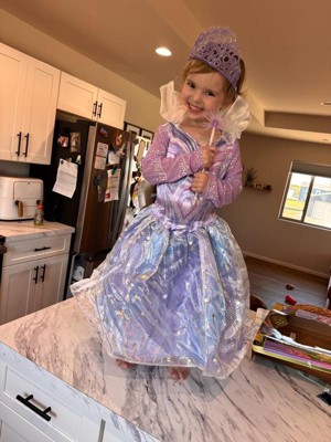 [This review was collected as part of a promotion.] Halloween costume coming right up. My 4 year old is on the taller side and this dress up costume was perfect on her. The colors are magical but by far her favorite parts are the wand and crown. Can’t wait for her to wear this to school on Halloween.