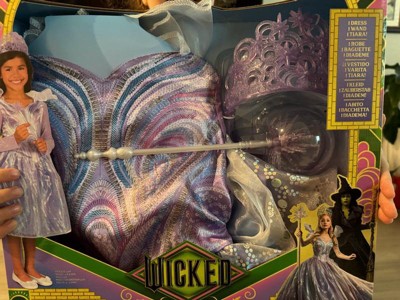 [This review was collected as part of a promotion.] My daughters are obsessed with wicked so this dress came just in time to entertain their obsession. It comes with the Glenda dress and a wand and crown accessories to complete the outfit. My little one makes the perfect Glenda and loves dressing up all the time