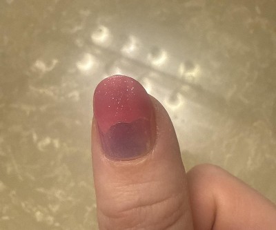 I really love the color and the shimmer that these nails have, but the top layer keeps chipping off, which lessened the look.