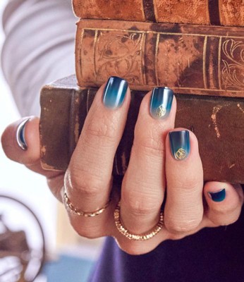 ‘Welcome To Shiz’ and these thrillifying NO GLUE press on nails inspired by the movie, ‘Wicked’. Spellbinding solid blue DIY manicure features an original bewitching design featuring the Shiz signature “S” in a gold chrome & gel flocking effect. NEW & IMPROVED adhesive for a secure hold that lasts for up to 10 days. From irresistible colors & designs to matte & glossy finishes, WICKED X imPRESS is always on trend with an exciting variety of styles, colors, shapes & sizes.