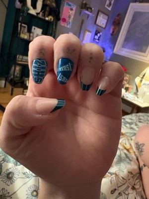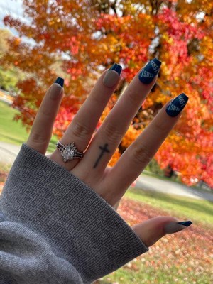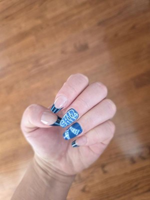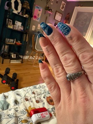 Welcome to Shiz! Enjoy your first day on the ‘Shiz Campus’ by wearing these Shiz University DIY press on nails inspired by the movie, ‘Wicked’. Class is in session with this solid blue manicure decorated with the pennant of jolly old Shiz. The shiniest, most fashionable way to get gorgeous, ready to wear nails takes minutes and lasts for up to 14 days. No damage to natural nails with hassle-free removal. Ready-to-wear gel manicure takes only minutes to apply.