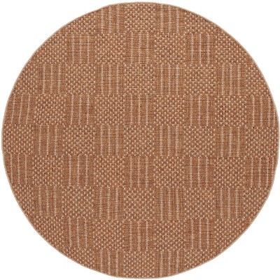Wicker WCK150 UV & Stain Resistant Non-Shedding Power Loomed Indoor/Outdoor Area Rug - Natural/Brown - 6'7" Round - Safavieh