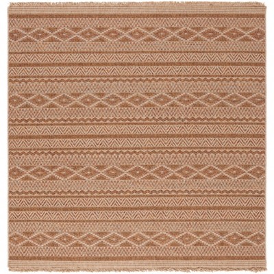 Wicker WCK154 UV & Stain Resistant Non-Shedding Power Loomed Indoor/Outdoor Area Rug - Natural/Brown - 6'7"x6'7" - Safavieh