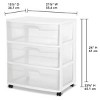 - It's easy to get organized and keep your living spaces clutter-free with the 3 Drawer Wide Cart! The overall assembled dimensions of this item are 15 1/4" D x 21 7/8" W x 24" H.