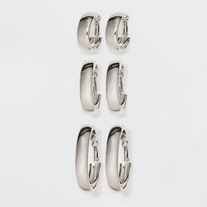 Hoop earring set from Wild Fable™ in a silver finish. Includes three pairs of wide metal hoops in three different sizes. Great for accessorizing a variety of different outfits. Designed with clip-in clasp closures.