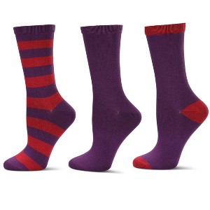 Wait till you slip your toes into these chic women's crew socks. You won't want to take them off! The secret's the luxe fine-gauge knit buttery-soft for cozy comfort, with flexible knit-in stretch. One pair has stylish varsity stripes. One is solid all over. And the third pair features bold contrast trim for a trendy color-block look.