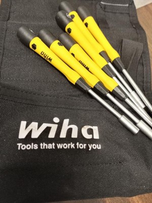 The WIHA TOOLS 27792 Solid Shank Precision Nut Driver Set is a reliable set of nut drivers that can handle various applications. This precision nut driver set offers great value for money and will prove to be an asset in your toolbox. It features solid round shank nut drivers with hex sizes ranging from 3/32 in, 7/64 in, 1/8 in, 9/64 in, 5/32 in, 3/16 in and 7/32 in. It also has a 1/4" size. The overall length of the tools is 5 1/2". The solid round shank design provides more durability than hollow shaft designs as it cannot flex under pressure. These nut drivers have a black and yellow handle color for better grip. WIHA TOOLS' 27792 Solid Shank Precision Nut Driver Set is the perfect set of professional quality tools that are designed to tackle all kinds of fasteners.