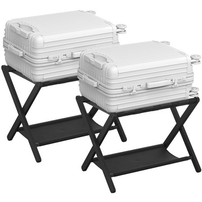 Wikineon Luggage Rack, Metal Foldable Suitcase Stand for Guest Room, Holds up to 100 lb, Steel Frame, Nylon Straps, Hotel, Bedroom, Closet, Black