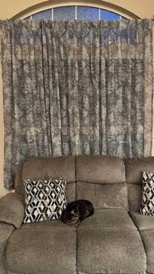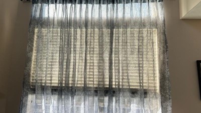 [This review was collected as part of a promotion.] I love this panel. Is is a perfect neutral color and let’s just the right amount of light in. It’s an almost blue grey color and the pattern looks gorgeous in the light. I love that I can close this and still let light into my kitchen while having some privacy. It is the perfect length and width for my porch sliders.