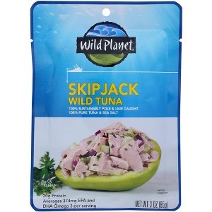Wild Planet single-serve pouch features a hand-cut and hand-packed skipjack tuna fillet cooked just once to retain all of its natural juices, Omega-3 oils and firm texture. Seasoned with a touch of sea salt and no added water or oil, this convenient option allows you to experience premium light tuna with a delicious, bold taste for on-the-go eating.