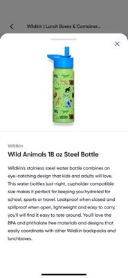 Wildkin's stainless insulated steel water bottle combines an eye-catching design that kids and adults will love. This water bottle’s just-right, cupholder compatible size makes it perfect for keeping you hydrated for school, sports or travel. Leakproof when closed and spill-proof when open, lightweight and easy to carry, you'll find it easy to tote around. You'll love the BPA and phthalate free materials and designs that easily coordinate with other Wildkin backpacks and lunchboxes.