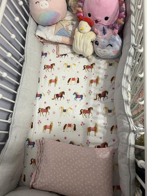 [This review was collected as part of a promotion.] This horse crib sheet is absolutely adorable. This crib sheet is very soft and it feels like it will remain very durable. This horse crib sheet matches the nursery perfectly.
