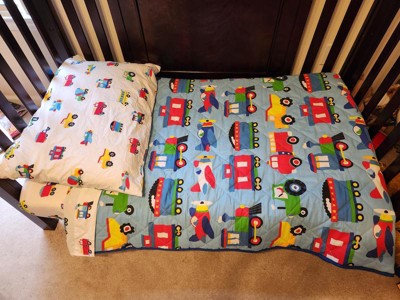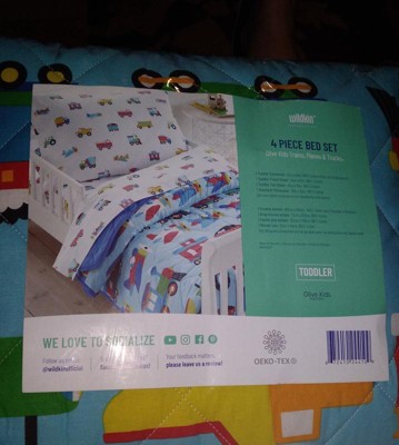 [This review was collected as part of a promotion.] I got this Wildkin - Trains, Planes & Trucks 4 pc Cotton Bed in a Bag - Toddler for my nephew .it looks so cute and good quality. Tye whole set washes well too .makes a nice gift for a baby shower too.