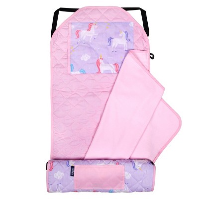 Great little nappy mat! It has the pillow and blanket attached. Tools up nice and neat. Perfect for preschoolers rest time. Queen is very nice. Bright and cheerful.