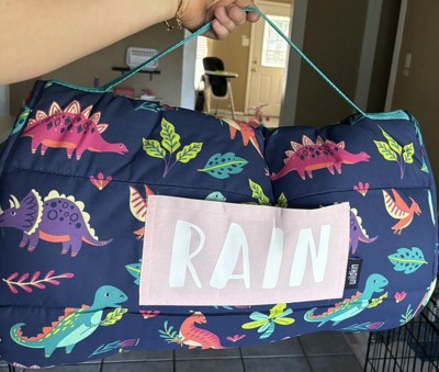 This nap mat is thicker than most for comfort and has all sorts of cute designs to choose from. My toddler loves it and is also able to carry it on her shoulder with no issues at all.