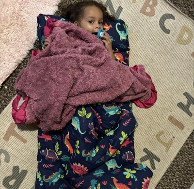 This nap mat is thicker than most for comfort and has all sorts of cute designs to choose from. My toddler loves it and is also able to carry it on her shoulder with no issues at all.