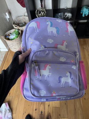 [This review was collected as part of a promotion.] My unicorn obsessed daughter loves this backpack! It’s light weight and perfect for her to take to preschool. It fits her lunch bag and paper work that she brings home. The material is easy to clean. I just take a cleaning wipe and stains and marks come right off.