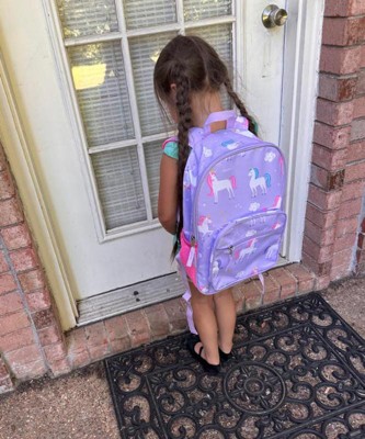 [This review was collected as part of a promotion.] My five year old daughter fell in love with this adorable backpack the moment she saw it. She loves unicorns, pink, and purple so this backpack seemed like it was made just for her! She wore it all around the to "prepare" for her first day of school. It fit everything she needed with some room to spare. My daughter is on the small side so the adjustable straps were really nice. The padded shoulders helped keep her comfortable when walking to the school from the car and into her classroom. The interior is just the right size for an elementary student. in front is one front pocket and a 2 side mesh pockets. A few little girls in her class immediately complimented the backpack which really helped set the tone for an amazing first day of kindergarten! As a mom side note, I really love that the backpack's exterior is made of recycled material and I'm excited about the anti-microbial inner lining to help the backpack stay fresh all year. :)