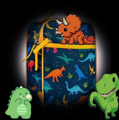 [This review was collected as part of a promotion.] Super cool looking lunch bag. Beautiful colors, and dinosaur designs on the front cover. The inside has a liner, that cleans easy. Ther handle is nice and makes it easy to carry. the zipper are big so easy to open and close. Perfect size to fit food, snack and drink. Of note, it is insulated.