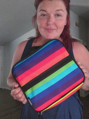 [This review was collected as part of a promotion.] This is such a cute and spacious lunch bag. It can really fit a lot. I was surprised on how big it is and it’s so cute with a little rainbow hearts all over it. My toddler just absolutely loves it. Thinks It’s his bag. It’s so easy to wipe off and it’s pretty tough if it can handle my toddler toting it around!