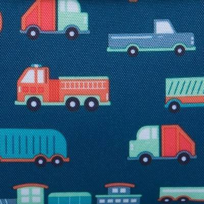 [This review was collected as part of a promotion.] Perfect size and my Grandson and he loved the print. Played counting games with the trains, planes and trucks which made lunchtime fun. The bag kept its shape and is the perfect size. Inside was easy to clean after his juice mishap- just wiped out and was good as new.