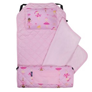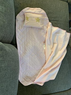 [This review was collected as part of a promotion.] I love this travel stars nap mat. It is made from high quality materials that are soft and it is well made. The attached blanket and pillow keeps your nap essentials all together. The elastic straps makes it attach to a cot with ease for those who use it at a daycare or somewhere with a cot. We used it without a cot and keep it in the car for when we are on the go at baseball games and my daughter loves it. It's great that it is washable and hasn't fallen apart. The color and pattern stays bright and beautiful. It is easy to fold back up too.