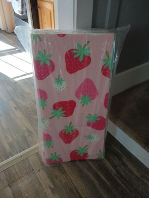 [This review was collected as part of a promotion.] The 70”x59” baby playmat with a strawberry print is a charming and spacious option for playtime. Its large size provides ample room for babies to explore, while the soft, cushioned surface offers comfort and protection during play. The strawberry print is visually appealing and adds a fun touch to any room. However, the mat may be a bit bulky to store when not in use. Overall, it’s a practical and aesthetically pleasing choice for keeping little ones entertained and safe.