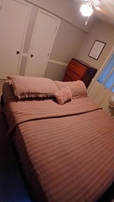 [This review was collected as part of a promotion.] The Wilhemina Dusty Rose Quilt Set by Levtex Home is beautifully designed with a vintage quilted braid pattern and soft, durable cotton fabric. It feels cozy and well-made. However, the color is lighter than expected, which might not suit everyone’s preference. #QuiltSet #HomeDecor #LevtexHome
