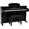 The Williams Overture III provides a wide palette of instrument sounds and outstanding acoustic piano feel, while at the same time adding a classic touch to home decor. Its graded, 88-key hammer keyboard has greater resistance at the bottom of the keyboard than the top, providing a higher standard in realistic response and feel. With three pedals for sustain, sostenuto and soft, the Overture III delivers the touch and response of an acoustic upright. In addition to its 171 realistic instrument sounds, the Overture III includes William’s Whole Note Technology which incorporates “unlooped” piano samples recorded for the natural duration of each note. Multilayered dynamics add to a fully expressive grand piano sound. All this technology includes 240-voice polyphony that mitigates notes being “cut off” while playing longer or more complicated passages. The Overture III includes Bluetooth wireless audio and USB audio, which is ideal for playing music, interactive lessons and apps. Its Bluetooth wireless MIDI connects to computers, tablets or phones. The free Williams iOS app provides easy access to menu functions and sound editing, while the included Skoove Premium trial teaches to play hundreds of popular songs. The Overture III also comes with a 2-track recorder for fun and practice, plus two headphone jacks with master volume, and a built-in, 4-speaker system for immersive, room-filling sound. A bench is also included.