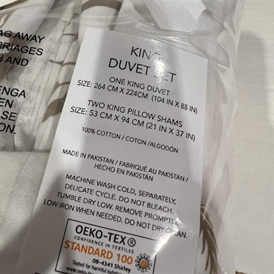 - Full/Queen Set Measures: Duvet Cover- 88”L X 92”W, Standard Shams- 21”L X 27”W; King Set Measures: Duvet Cover-106”L X 92”W, King Shams- 21”L X 37”W
