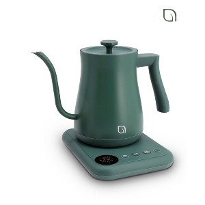 Upgrade your kitchen with the Willow Digital Gooseneck Kettle, a sleek and modern essential designed for precision brewing. Made from certified recycled materials, this eco-friendly kettle delivers both style and performance. Whether you're steeping tea, crafting the perfect pour-over coffee, or preparing hot cocoa, its precise temperature control ensures the ideal brew every time. With 1200 watts of power, it rapidly heats up to 1.0 liter of water, while five preset temperature settings offer effortless precision. Plus, you can fine-tune the temperature to your exact preference using the adjustable temperature dial. The digital display and keep-warm function add convenience, so you can enjoy your drink at the perfect temperature—without the wait. Made without PTFEs, PFOAs, and PFAs, it's a safe and sustainable choice for your kitchen.