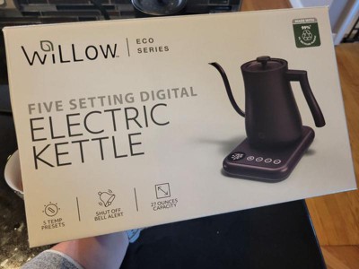 [This review was collected as part of a promotion.] I am very impressed and excited about this Willow electric kettle. It is stylish, fast, and easy to use. I love how you can set the different heat modes based on the tea or coffee you are trying to make. I received a free product in exchange for my honest review.