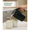 - Features a one-button control with four settings: warm and thick milk froth, warm and thin milk froth, hot milk with minimum froth, and cold froth.