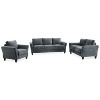The Willow stationary collection features sleek rolled arms with defined, plush cushions that add a refined modern upgrade to your room. The Willow Chair is constructed with kiln dried wood frame sets the foundation on which tailored cushions covered in soft Dark Grey microfiber will cradle your body in superb comfort. The design lines and scale of the Willow will bring elegance and comfort to modern spaces especially small quarters. Relax in first class comfort and style enjoying the Willow in your home!