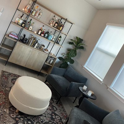 This ottoman is super stylish and sturdy. The height is perfect for resting your feet and would even work in lieu of a coffee table if needed. The boucle fabric gives it an extra chic/boho touch. I wish the layers of the ottoman were all the same size, but otherwise it is perfect.