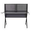 - Features side cup holder and head phone hook with a pegboard back panel for organization