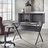 Transform your work-study area and organize your space with the Wilmore Desk from Buylateral. A moderate height hutch is designed with a perforated modesty panel for minimizing distractions, along with a top shelf for storing books, binders, and more. The featured drink holder and side hook assist in clearing desk clutter, maximizing your work surface. While the unique pegboard back panel allows for organization and creativity. This ideal workstation in a gray finish is constructed of durable laminated MDF and a metal frame with cross bars and a back panel for added support.