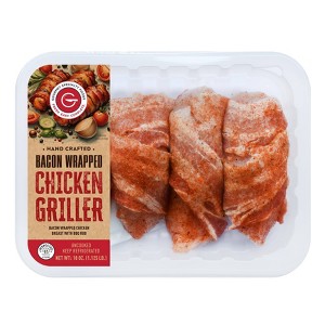 boneless skinless chicken breast, applewood smoked bacon (cured with: water, salt, sugar, sodium phosphate, smoke flavoring, sodium erythorbate, sodium nitrite), seasoning (spices, brown sugar, salt, mustard, chili powder [chili peppers, salt, spices, garlic], mustard, dehydrated garlic), seasoning (dried onion & garlic, sugar, sea salt, spices, mustard seed, modified corn starch, sodium citrate, xanthan gum, extractives of paprika, sodium diacetate).' '