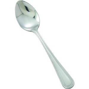 Beautify your table settings with the Winco 0005-03 Dots Heavy Weight Mirror Finish Stainless Steel Dinner Spoon. Featuring a charming tear-shaped structure with a beaded rim, this utensil is simple yet elegant and its mirror finish gives it added shine and luster. As an added benefit, it has a sturdy handle that provides a well-balanced grip as you transfer food. Made of durable 18/0 stainless steel, this dinner spoon is tough enough to endure heavy use without bending out of shape and is dishwasher safe. In addition, it can withstand frequent washings without losing its polished finish.