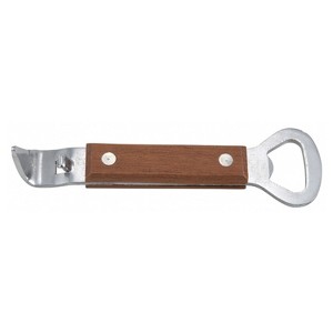 Stock your bar, restaurant, cafe, buffet, or catering supply with this wood handle bottle and can opener. On one side is a bottle opener and the opposite side has a sharp tip that can be used to help open canned food items. Liding the center grip is a hard wood handle that ensures a slip-resistant grip and comfortable grasp.