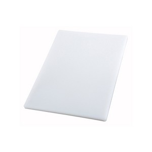 The Winco rectangular cutting board is crafted from non-porous polyethylene and can be used to promote safety and sanitation in your commercial kitchen. Thanks to its skid-resistant surface, this NSF approved board prevents cut grooves and provides stability during food preparation. This white rectangular cutting board can be assigned for use with a specific food group, such as diary products. This model is also BPA free.