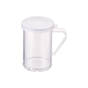 The Winco PDG-10 is a polycarbonate 10 ounce dredge set which includes a polycarbonate base and three different size snap on lids. The dredge is clear for easy identification of the contents and it also features a built-in handle for convenient carrying. The three lids included come with small, medium, and large openings to work perfectly with any spice or condiment. The set is also NSF listed.
