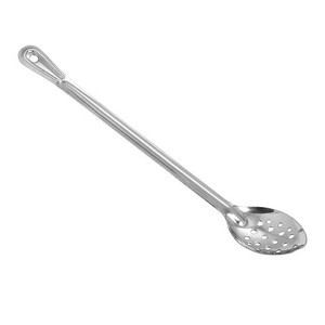 Ideal for removing select food items from a large pot the Winco BSPT-15 Perforated Stainless Steel Basting Spoon 15" will ensure fast drainage of unwanted liquids. Constructed with carefully placed perforations to facilitate quick drainage, this 1.2mm thick stainless steel basting spoon is durable enough for tough commercial use. With a long handle this basting spoon offers easy access into deep pots while its convenient hang hole makes it easy to store.