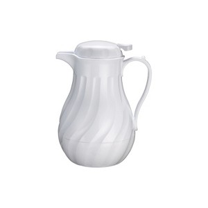 Add a touch of style to your beverage service with the Winco VSW-42K Black Insulated Swirl Design Beverage Server. Featuring a charming twirl pattern and a sleek black finish, it is suitable for both casual and formal dining affairs. For added convenience, it has a push-button, that makes it easy to open while its wide handle provides a sturdy, well-balanced grip. Constructed from durable plastic, this beverage server is strong enough to handle years of heavy use and its double wall insulation helps maintain temperatures. In addition, it comes with labels for "regular", "decaf" and "tea", so you can easily mark your drinks and eliminate confusion in your busy establishment.